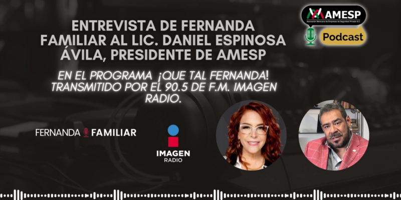 Entrevista de Fernanda Familiar al Lic. Daniel Espinosa Ávila, Presidente de AMESP, en el programa ¡Que tal Fernanda! transmitido por el 90.5 de F.M. Imagen Radio. YouTube: https://youtu.be/eDRnTc-CIRE?si=41ObfrZph5u5ixmf Spotify: https://open.spotify.com/episode/2EayQPTerhhpRGOpLXIRLN?si=ec3953a6c2584452 Escucha esta excelente entrevista a nuestro Presidente.